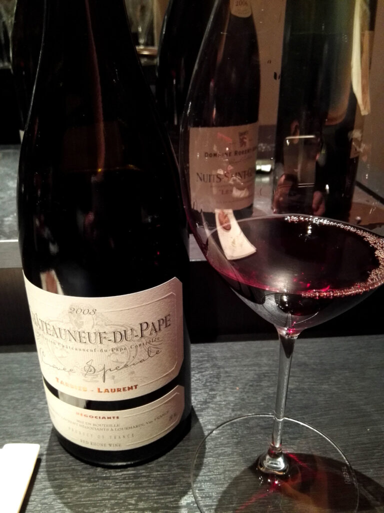 シャンパンで開き、白ワイン二杯(2008年の上品な香りとシャープな白)で前半を受け、赤ワイン三杯(豊潤なミディアムボディ、濃厚でスパイシー、ベリーと黒胡椒)でメインを迎える。白から赤への移行が料理の方向性の切り替えと連動しており、濃厚でスパイシーな赤が蝦夷鹿のフォンドボーソースと呼応する設計だ。ワインのペアリングも良かったという評価は、酒の選択が料理の設計思想と整合していることを示す。締めのハーブティーは、食後の余韻を清涼に整える。