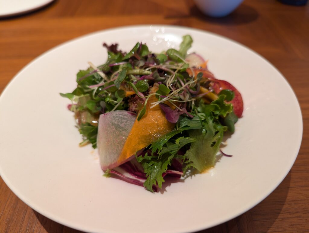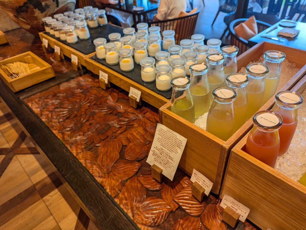 和洋選択制という構成は、ゲストの多様性に対応するオペレーション上の合理解だ。栃木県産の野菜・フルーツという素材調達の地産地消方針は、品質保証と地域連携の両立として機能する。巣蜜の蜂蜜という選択は特筆に値する。スプレッドではなく巣蜜という形態での提供は、「加工を経ていない自然の状態」への審美的こだわりであり、このホテルが「自然」をブランドの核に据えていることの朝食における表現だ。
