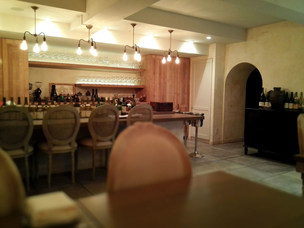 初台と参宮橋の中間に位置するこの店は、代々木公園に近く、商業的な賑わいとは一線を画す住宅地の静けさの中にある。観光動線から外れた立地は、能動的に探す者だけが辿り着くという意味において、松川や京味と同じ文脈の選択だ。訪問日は昼の一組貸し切り。空間ごと自分たちのものになる状態は、料理への集中度を上げる。雑音がなく、皿と皿の間の時間が際立つ。