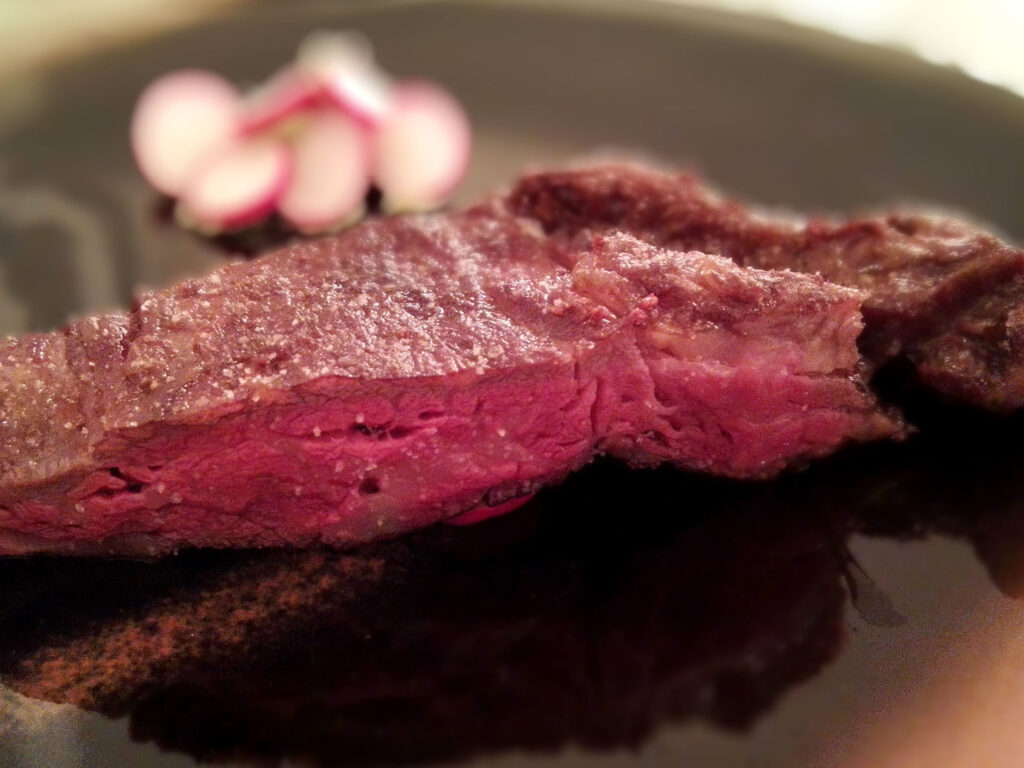 「ボニュ焼き」は、14歳・未経産の見島牛を肉を休ませながら6時間かけて焼いた一品だ。柔らかいとかとろけるとかいった既存の語彙が当てはまらない食感——「もうこれしかない」という感触は、言語化を拒む。6時間という数字が驚異なのではなく、その6時間の焼き方にたどり着くまでの歳月と試行が驚異なのだ、という認識は正確だ。再現性のある技術として確立されるまでの非線形なプロセスこそが、この料理の本当のコストである。