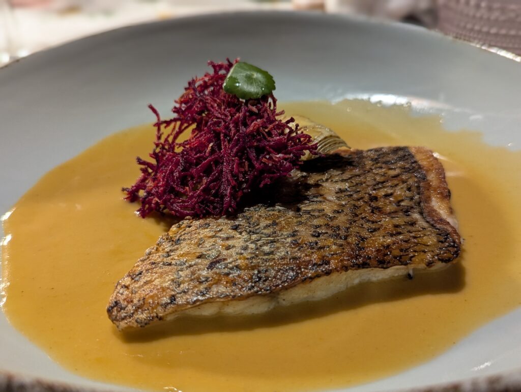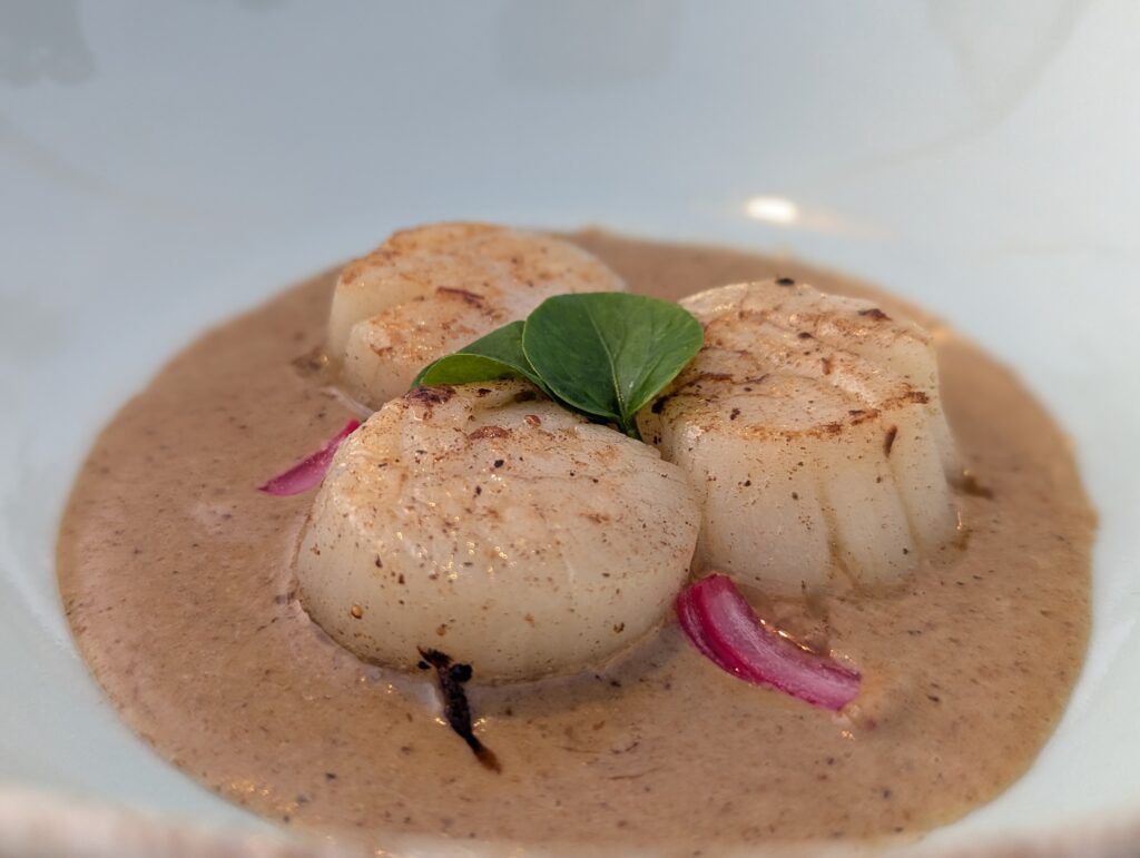 ホタテのソテーは外がカリッと中がミルキーな半生という火入れの精度が核心だ。バターと椎茸の旨味が一体化する——椎茸という日本・東アジアの食材をフレンチのバターソースの文脈に持ち込む選択は、Hai Yanの現代中華と同様、リッツ・カールトン・ランカウイの料理がアジアの食材を積極的に組み込む設計思想を持つことを示す。