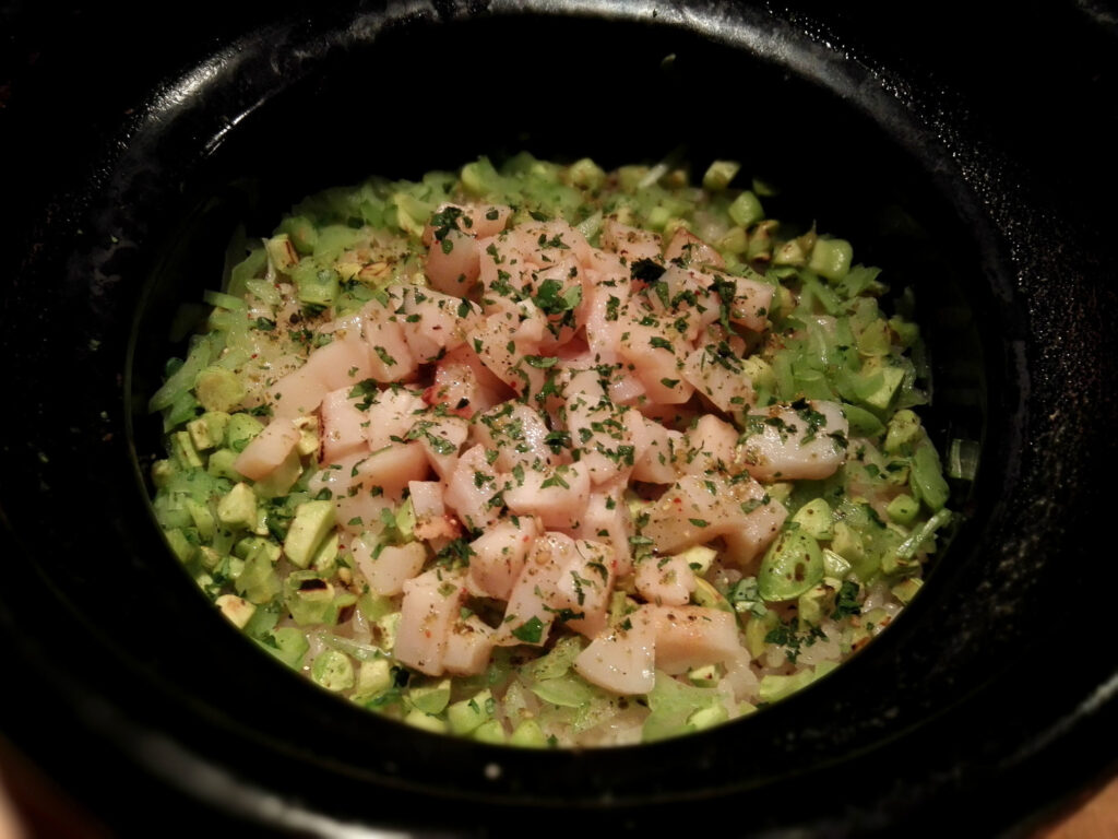 椀は出汁の繊細さが突出していた。極薄味でありながら、記憶に深く刻まれる出汁——これは出汁の「薄さ」が目的ではなく、素材の旨味を阻害するものを削ぎ落とした結果として薄くなっているという状態だ。海老だけで作ったつなぎなしのつみれは、海老の純粋な旨味を封じ込めた一粒として椀に浮かぶ。蓋を開けた瞬間の香りに誘われ、思考より先に手が動く椀とはこういうものだ。