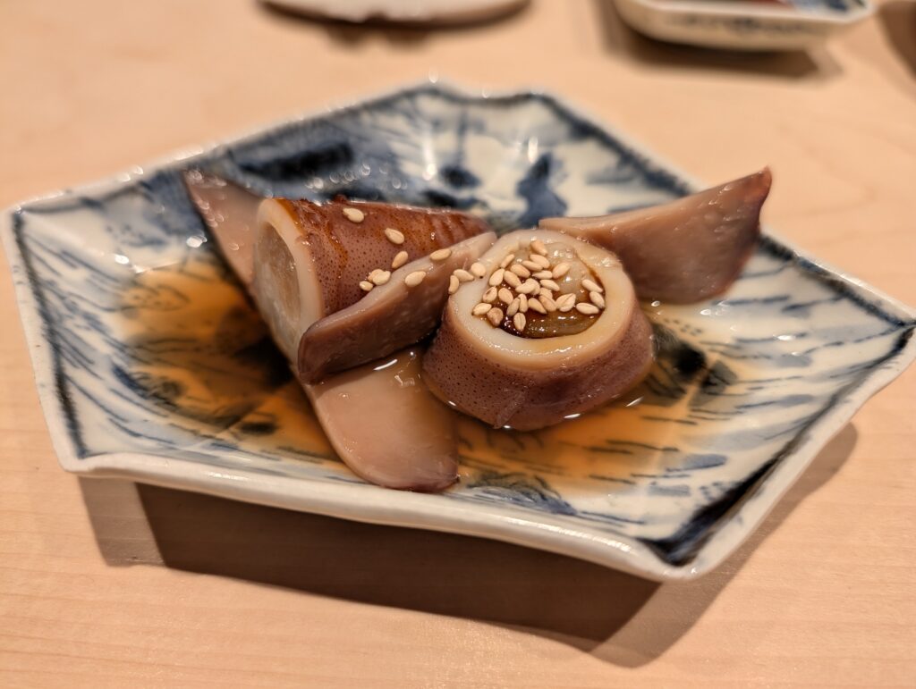 - 子持ちヤリイカ。卵の旨味が主役として機能し、技術の粒度が伝わる仕上がり。